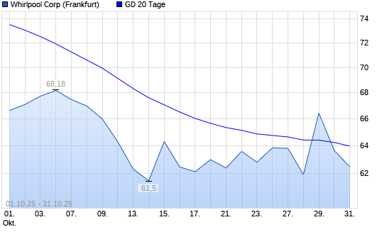Mit dem Rücksetzer auf 63,66 EUR hat die Whirlpool-Aktie am 30.10.2025 die 20-Tage-Linie nach unten gekreuzt.