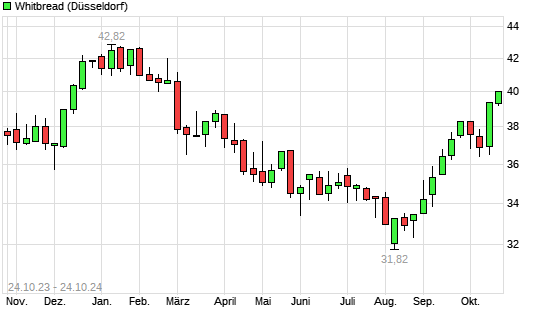 Mit dem Anstieg auf 39,82 EUR hat die Whitbread-Aktie (ISIN GB00B1KJJ408) am 23.10.2024 ein neues 6-Monats-Hoch erreicht und damit den Kurs vom 22.10.2024 eingestellt.