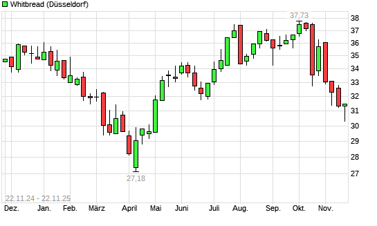 Mit dem Rücksetzer auf 30,75 EUR hat die Whitbread-Aktie (ISIN GB00B1KJJ408) am 21.11.2025 ein neues 6-Monats-Tief erreicht und damit den Kurs vom 18.11.2025 eingestellt.