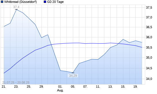 Mit dem Rücksetzer auf 35,69 EUR hat die Whitbread-Aktie am 19.08.2025 die 20-Tage-Linie nach unten gekreuzt.