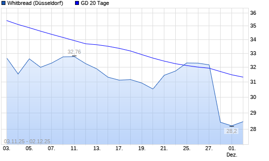 Mit dem Rücksetzer auf 28,16 EUR hat die Whitbread-Aktie am 01.12.2025 die 20-Tage-Linie nach unten gekreuzt.