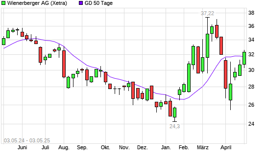 Mit dem Anstieg auf 31,80 EUR hat die Wienerberger-Aktie am 02.05.2025 die 50-Tage-Linie nach oben gekreuzt.
