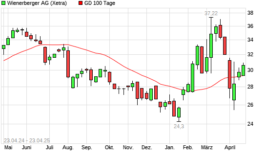 Mit dem Rücksetzer auf 29,28 EUR hat die Wienerberger-Aktie am 22.04.2025 die 100-Tage-Linie nach unten gekreuzt.