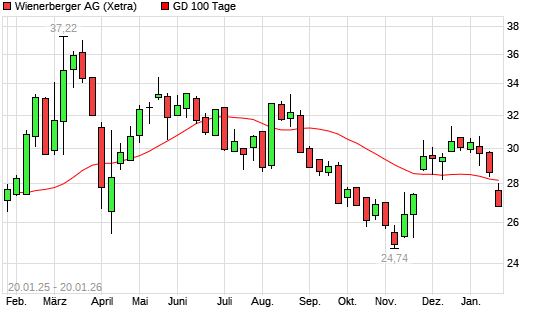 Mit dem Rücksetzer auf 27,86 EUR hat die Wienerberger-Aktie am 19.01.2026 die 100-Tage-Linie nach unten gekreuzt.
