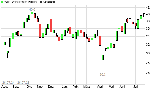 Mit dem Anstieg auf 40,30 EUR hat die Wilh. Wilhelmsen Holding ASA-Aktie (ISIN NO0010571698) am 25.07.2025 ein neues 6-Monats-Hoch erreicht und damit den Kurs vom 21.07.2025 eingestellt.