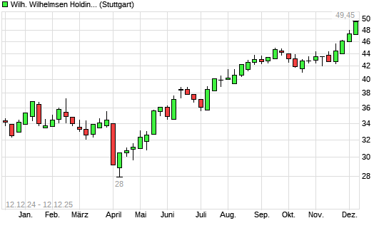 Mit dem Anstieg auf 48,75 EUR hat die Wilh. Wilhelmsen Holding ASA-Aktie (ISIN NO0010571698) am 11.12.2025 ein neues All-Time-High erreicht und damit den Kurs vom 08.12.2025 eingestellt.