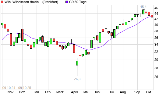 Mit dem Rücksetzer auf 42,55 EUR hat die Wilh. Wilhelmsen Holding ASA-Aktie am 08.10.2025 die 50-Tage-Linie nach unten gekreuzt.