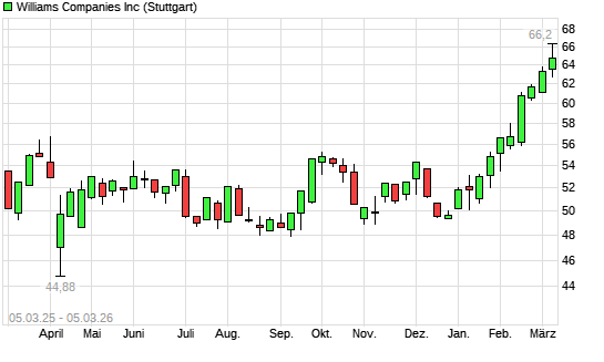 Mit dem Anstieg auf 64,85 EUR hat die Williams Companies-Aktie (ISIN US9694571004) am 04.03.2026 ein neues All-Time-High erreicht und damit den Kurs vom 03.03.2026 eingestellt.