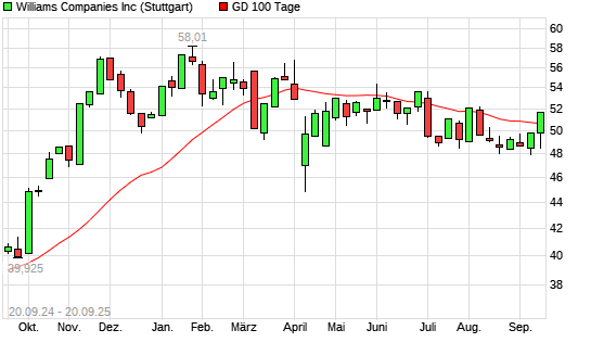 Mit dem Anstieg auf 51,03 EUR hat die Williams Companies-Aktie am 19.09.2025 die 100-Tage-Linie nach oben gekreuzt.