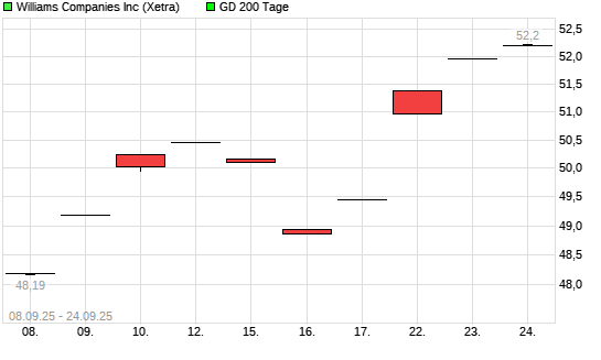 Mit dem Anstieg auf 51,80 EUR hat die Williams Companies-Aktie am 24.09.2025 die 200-Tage-Linie nach oben gekreuzt.