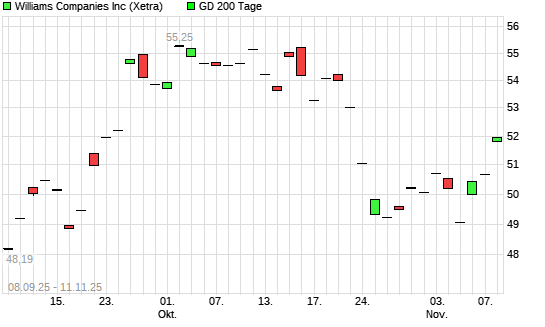Mit dem Anstieg auf 52,59 EUR hat die Williams Companies-Aktie am 10.11.2025 die 200-Tage-Linie nach oben gekreuzt.