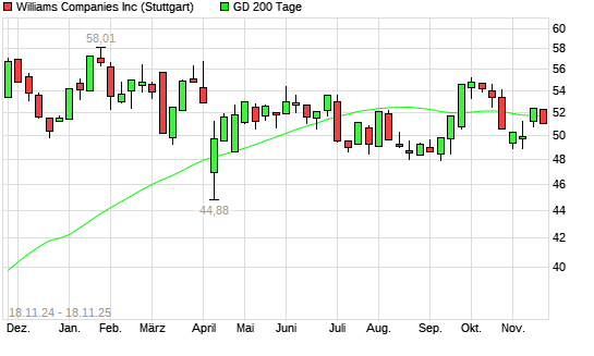 Mit dem Anstieg auf 52,49 EUR hat die Williams Companies-Aktie am 17.11.2025 die 200-Tage-Linie nach oben gekreuzt.