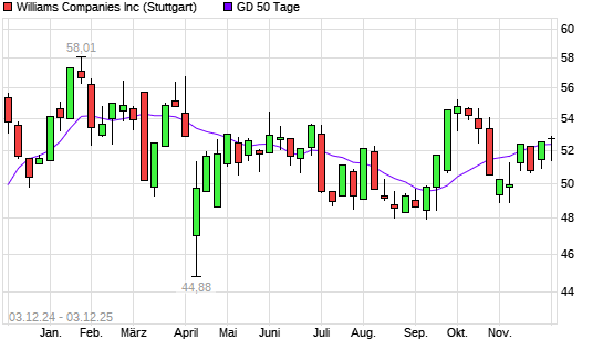 Mit dem Anstieg auf 52,63 EUR hat die Williams Companies-Aktie am 02.12.2025 die 50-Tage-Linie nach oben gekreuzt.
