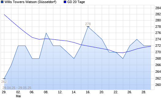 Mit dem Anstieg auf 274,00 EUR hat die Willis Towers Watson-Aktie am 28.05.2025 die 20-Tage-Linie nach oben gekreuzt.