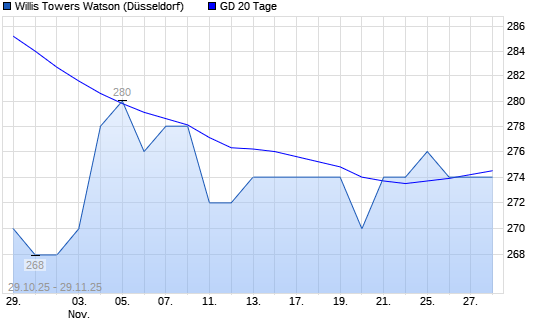 Mit dem Anstieg auf 276,00 EUR hat die Willis Towers Watson-Aktie am 28.11.2025 die 20-Tage-Linie nach oben gekreuzt.