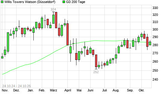 Mit dem Anstieg auf 286,00 EUR hat die Willis Towers Watson-Aktie am 23.10.2025 die 200-Tage-Linie nach oben gekreuzt.