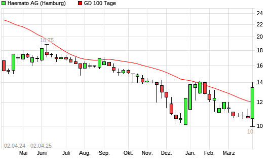 Mit dem Anstieg auf 13,50 EUR hat die Windsor-Aktie am 01.04.2025 die 100-Tage-Linie nach oben gekreuzt.