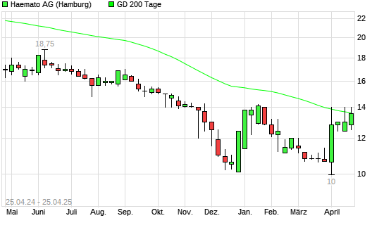 Mit dem Anstieg auf 14,00 EUR hat die Windsor-Aktie am 24.04.2025 die 200-Tage-Linie nach oben gekreuzt.