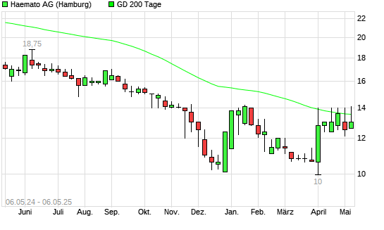 Mit dem Anstieg auf 14,10 EUR hat die Windsor-Aktie am 05.05.2025 die 200-Tage-Linie nach oben gekreuzt.