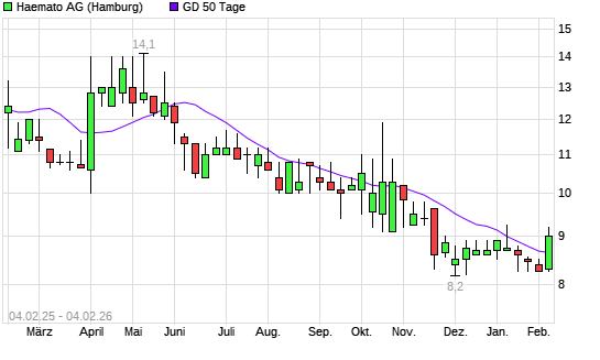 Mit dem Anstieg auf 8,80 EUR hat die Windsor-Aktie am 03.02.2026 die 50-Tage-Linie nach oben gekreuzt.