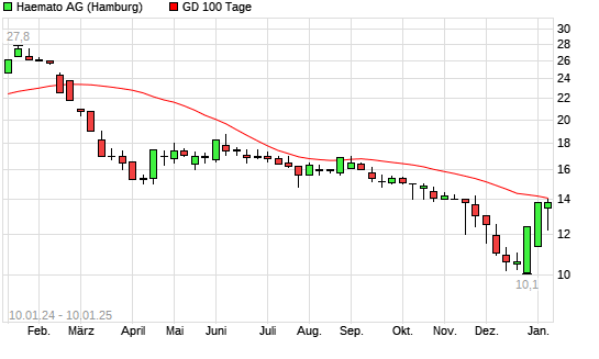 Mit dem Rücksetzer auf 12,60 EUR hat die Windsor-Aktie am 09.01.2025 die 100-Tage-Linie nach unten gekreuzt.