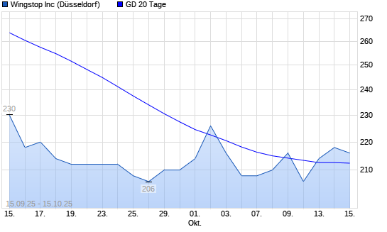 Mit dem Anstieg auf 218,00 EUR hat die Wingstop-Aktie am 14.10.2025 die 20-Tage-Linie nach oben gekreuzt.