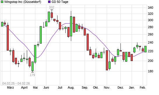 Mit dem Anstieg auf 224,00 EUR hat die Wingstop-Aktie am 03.02.2026 die 50-Tage-Linie nach oben gekreuzt.