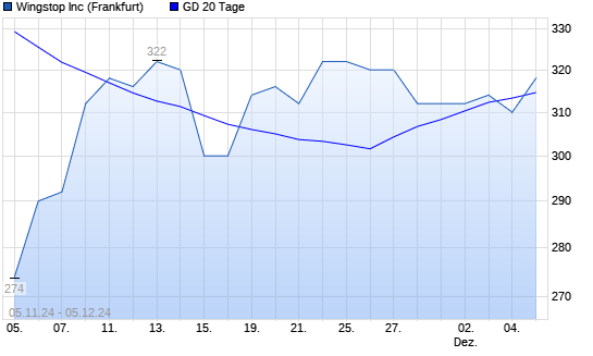 Mit dem Rücksetzer auf 310,00 EUR hat die Wingstop-Aktie am 04.12.2024 die 20-Tage-Linie nach unten gekreuzt.