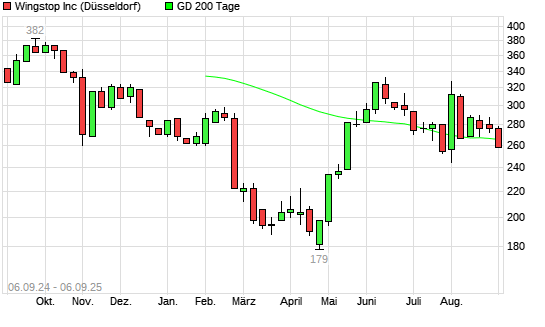 Mit dem Rücksetzer auf 264,00 EUR hat die Wingstop-Aktie am 05.09.2025 die 200-Tage-Linie nach unten gekreuzt.