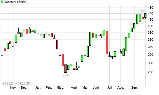 Mit dem Anstieg auf 440,00 EUR hat die Winmark-Aktie (ISIN US9742501029) am 03.10.2025 ein neues All-Time-High erreicht und damit den Kurs vom 02.10.2025 eingestellt.