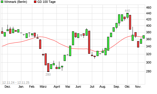 Mit dem Anstieg auf 370,00 EUR hat die Winmark-Aktie am 11.11.2025 die 100-Tage-Linie nach oben gekreuzt.