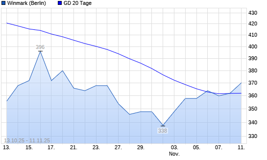 Mit dem Anstieg auf 362,00 EUR hat die Winmark-Aktie am 10.11.2025 die 20-Tage-Linie nach oben gekreuzt.