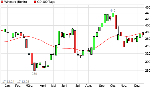 Mit dem Rücksetzer auf 366,00 EUR hat die Winmark-Aktie am 16.12.2025 die 100-Tage-Linie nach unten gekreuzt.