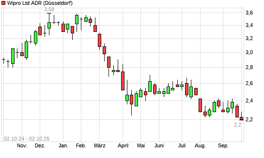 Mit dem Rücksetzer auf 2,22 EUR hat die Wipro ADR-Aktie (ISIN US97651M1099) am 01.10.2025 ein neues 12-Monats-Tief erreicht und damit den Kurs vom 30.09.2025 eingestellt.