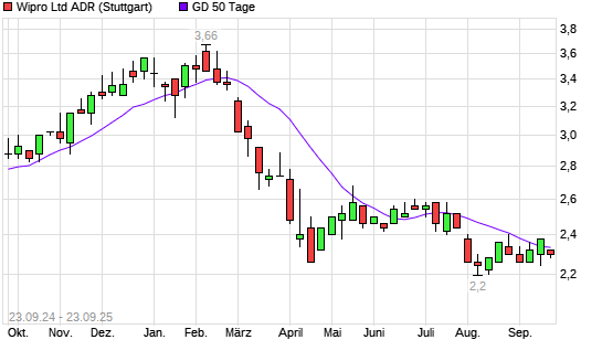 Mit dem Rücksetzer auf 2,38 EUR hat die Wipro ADR-Aktie am 22.09.2025 die 50-Tage-Linie nach unten gekreuzt.