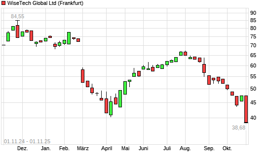 Mit dem Rücksetzer auf 38,68 EUR hat die WiseTech Global-Aktie (ISIN AU000000WTC3) am 31.10.2025 ein neues 12-Monats-Tief erreicht und damit den Kurs vom 07.04.2025 eingestellt.