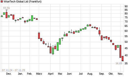 Mit dem Rücksetzer auf 37,88 EUR hat die WiseTech Global-Aktie (ISIN AU000000WTC3) am 06.11.2025 ein neues 12-Monats-Tief erreicht und damit den Kurs vom 04.11.2025 eingestellt.