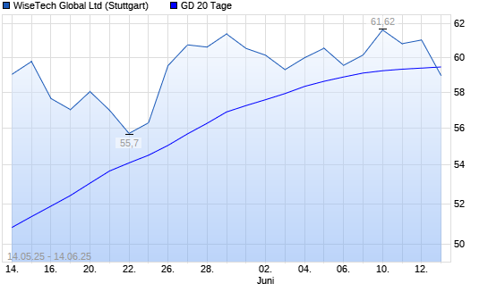 Mit dem Rücksetzer auf 57,48 EUR hat die WiseTech Global-Aktie am 13.06.2025 die 20-Tage-Linie nach unten gekreuzt.