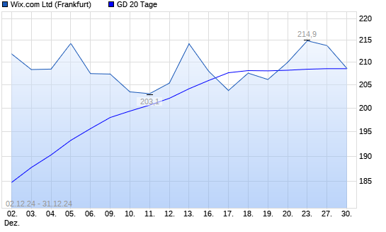 Mit dem Rücksetzer auf 207,60 EUR hat die Wix.com-Aktie am 30.12.2024 die 20-Tage-Linie nach unten gekreuzt.
