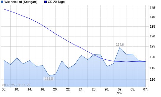 Mit dem Rücksetzer auf 118,15 EUR hat die Wix.com-Aktie am 07.11.2025 die 20-Tage-Linie nach unten gekreuzt.