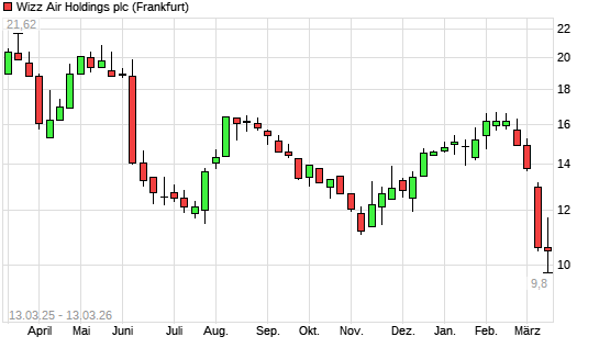 Mit dem Rücksetzer auf 10,50 EUR hat die Wizz Air Holdings-Aktie (ISIN JE00BN574F90) am 12.03.2026 ein neues All-Time-Low erreicht und damit den Kurs vom 09.03.2026 eingestellt.