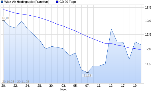 Mit dem Anstieg auf 12,25 EUR hat die Wizz Air Holdings-Aktie am 19.11.2025 die 20-Tage-Linie nach oben gekreuzt.