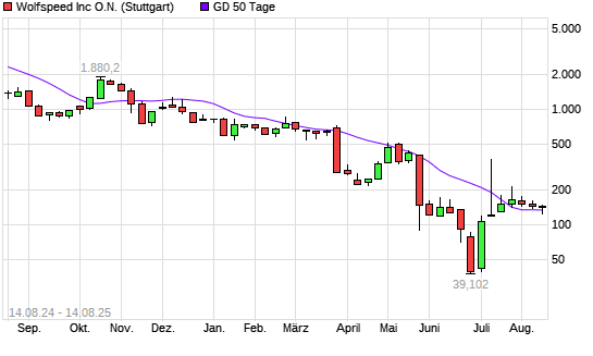 Mit dem Rücksetzer auf 1,09 EUR hat die Wolfspeed-Aktie am 13.08.2025 die 50-Tage-Linie nach unten gekreuzt.