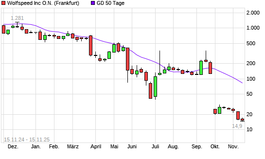 Mit dem Rücksetzer auf 15,50 EUR hat die Wolfspeed-Aktie am 14.11.2025 die 50-Tage-Linie nach unten gekreuzt.