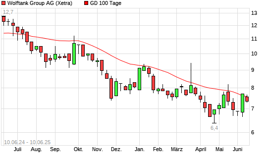 Mit dem Rücksetzer auf 7,35 EUR hat die Wolftank Holding-Aktie am 09.06.2025 die 100-Tage-Linie nach unten gekreuzt.