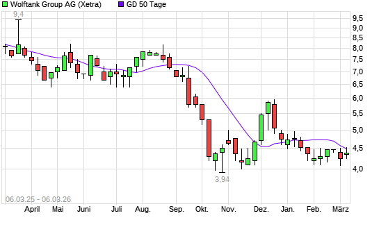 Mit dem Rücksetzer auf 4,38 EUR hat die Wolftank Holding-Aktie am 05.03.2026 die 50-Tage-Linie nach unten gekreuzt.