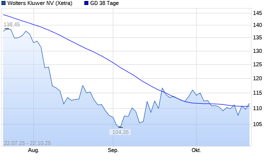 Mit dem Anstieg auf 111,25 EUR hat die Wolters Kluwer-Aktie am 21.10.2025 die 38-Tage-Linie nach oben gekreuzt.Die Wolters Kluwer-Aktie befindet sich seit dem 30.05.2025 im langfristigen Abwärtstrend ...weiterlesen