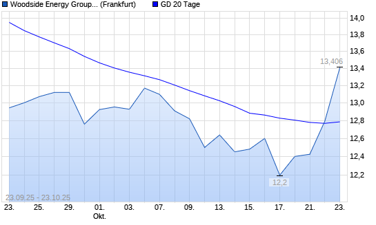 Mit dem Anstieg auf 12,79 EUR hat die Woodside Energy-Aktie am 22.10.2025 die 20-Tage-Linie nach oben gekreuzt.