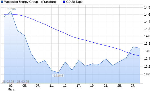 Mit dem Anstieg auf 13,72 EUR hat die Woodside Petroleum-Aktie am 27.03.2025 die 20-Tage-Linie nach oben gekreuzt.