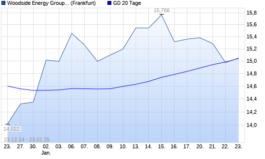 Mit dem Rücksetzer auf 14,98 EUR hat die Woodside Petroleum-Aktie am 22.01.2025 die 20-Tage-Linie nach unten gekreuzt.
